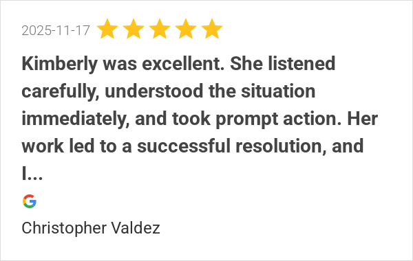 Kimberly was essential in my case, provided immediate action...