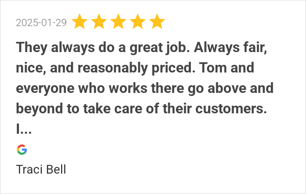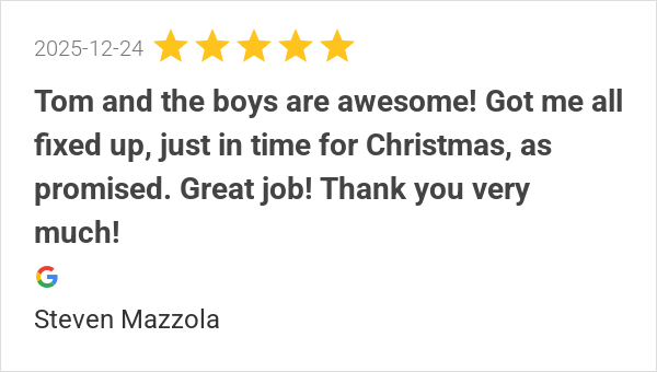 Tom and the boys are awesome! Got me all fixed up, just in t...