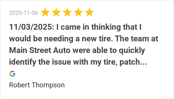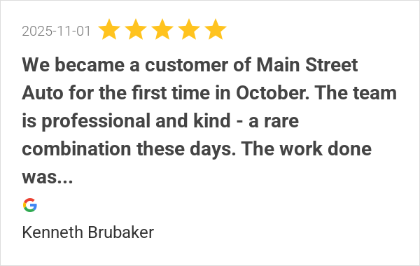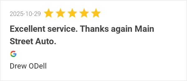 Excellent service. Thanks again Main Street Auto.