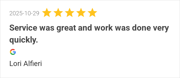 Service was great and work was done very quickly.
