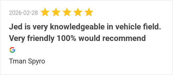 Jed is very knowledgeable in vehicle field. Very friendly 10...