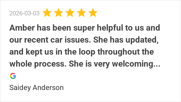 Amber has been super helpful to us and our recent car issues...