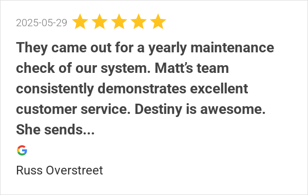 They came out for a yearly maintenance check of our system. ...