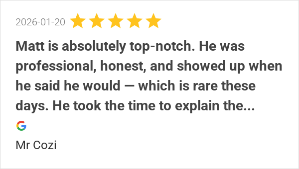 Matt is absolutely top-notch. He was professional, honest, a...