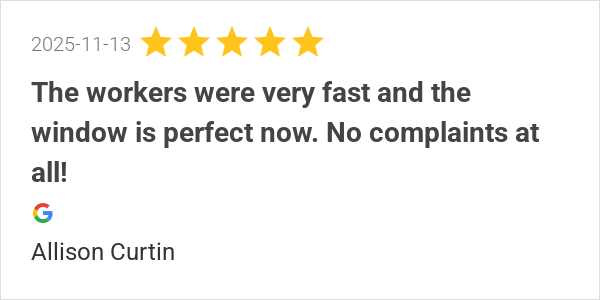 The workers were very fast and the window is perfect now. No...