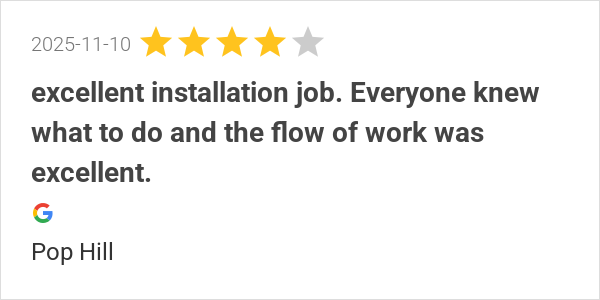 excellent installation job. Everyone knew what to do and the...