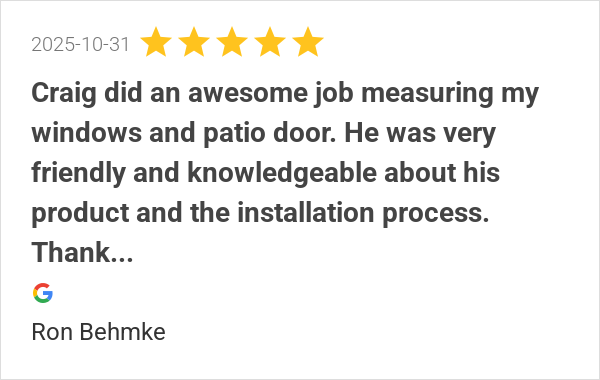 Craig did an awesome job measuring my windows and patio door...