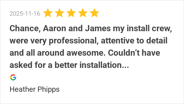 Chance, Aaron and James my install crew, were very professio...