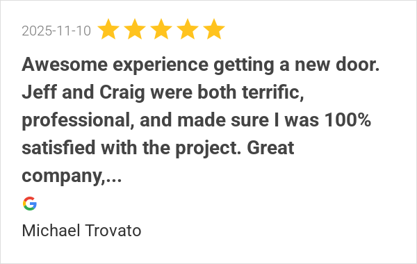 Awesome experience getting a new door. Jeff and Craig were b...