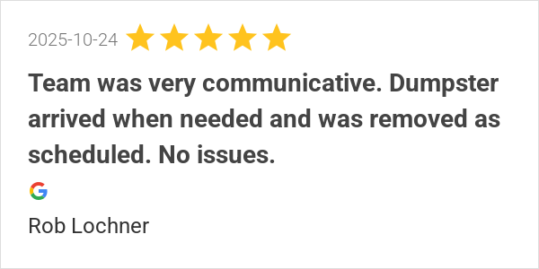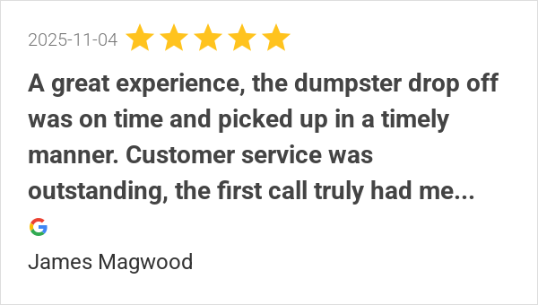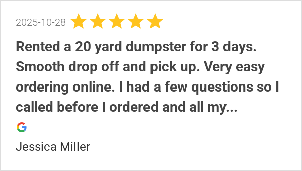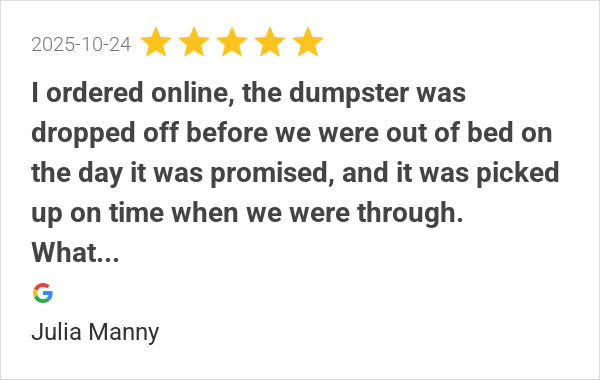 Very easy experience. Ordered dumpster on Friday for Saturda...