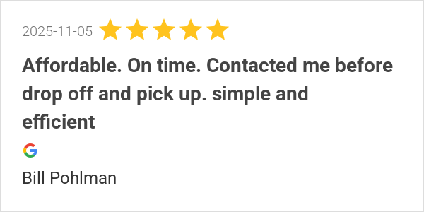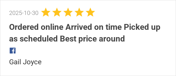 Ordered online Arrived on time Picked up as scheduled Best p...