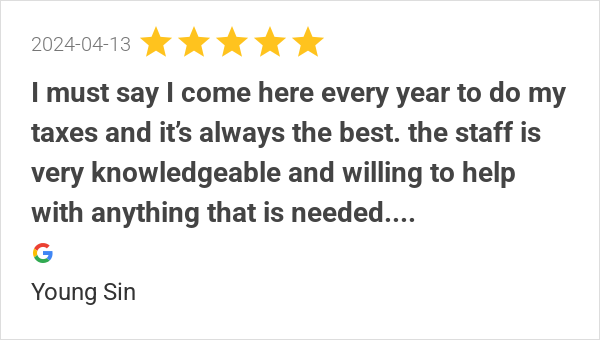 I must say I come here every year to do my taxes and it’s al...