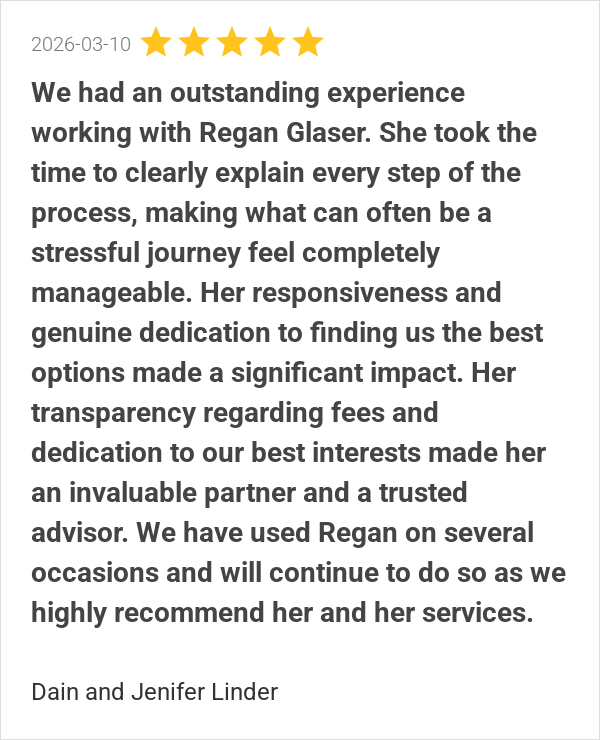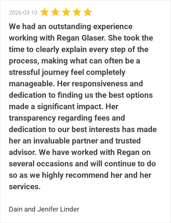 We had an outstanding experience working with Regan Glaser. ...
