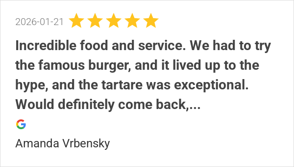 Incredible food and service. We had to try the famous burger...