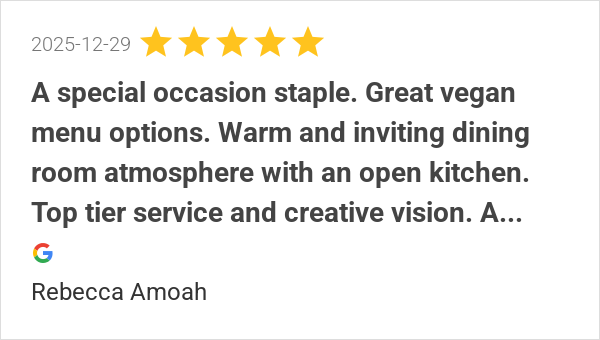 A special occasion staple. Great vegan menu options. Warm an...