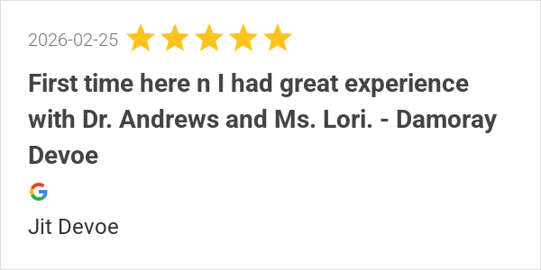 First time here n I had great experience with Dr. Andrews an...