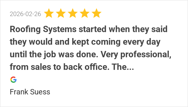 Roofing Systems was great! Their supervisor on my job, Dault...