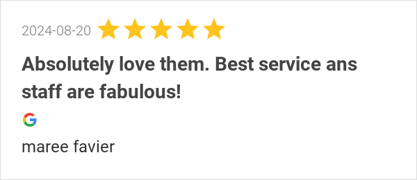 Absolutely love them. Best service ans staff are fabulous!