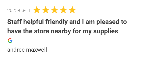 Great product range and customer service.