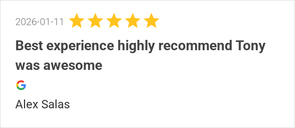 Best experience highly recommend Tony was awesome