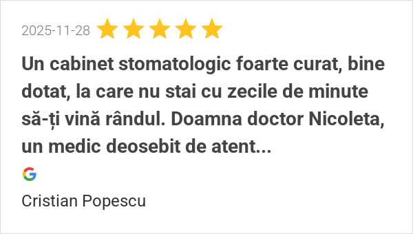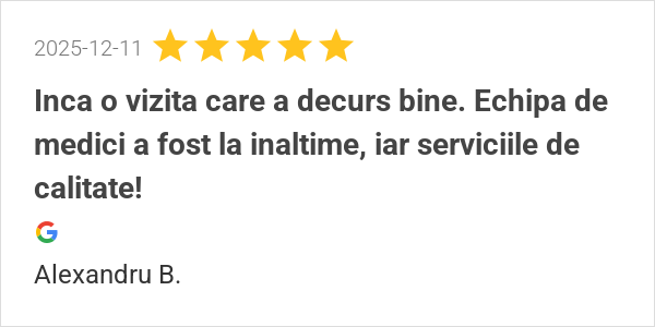 Foarte multumit de clinica, revin de fiecare data cu drag la...