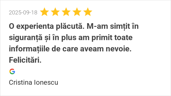O experienta plăcută. M-am simțit în siguranță și în plus am...