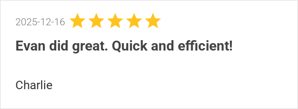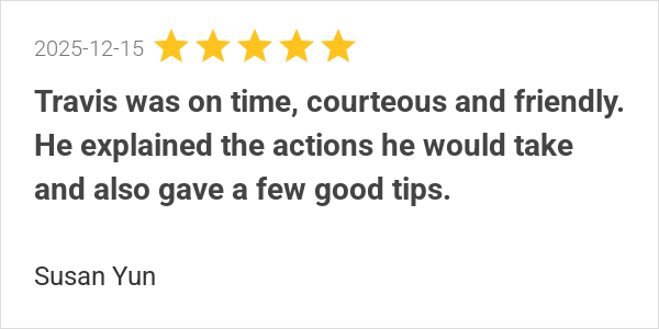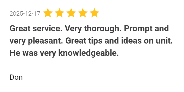 Great service. Very thorough. Prompt and very pleasant. Gre...
