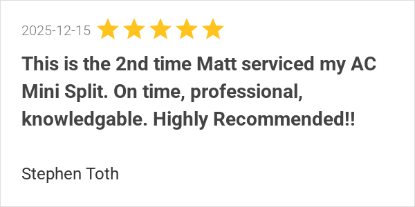 This is the 2nd time Matt serviced my AC Mini Split. On time...