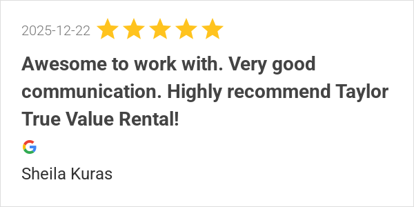 I had an excellent experience with Taylor rental!