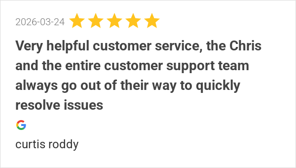 Very helpful customer service, the Chris and the entire cust...