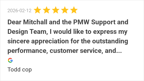 Have always been happy with PMW. Same day turn around on cha...