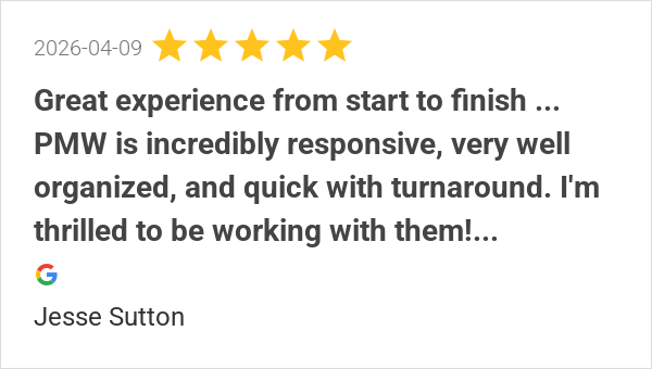 Great experience from start to finish ... PMW is incredibly ...