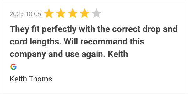 Ordered 3 blinds so far, happy with them all. Easy to instal...