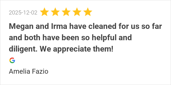 We appreciate Lucia. She cares and does a great job cleaning...