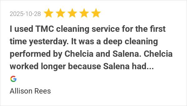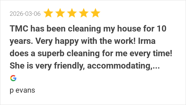 TMC has been cleaning my house for 10 years. Very happy with...