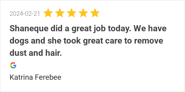 Shaneque did a great job today. We have dogs and she took gr...