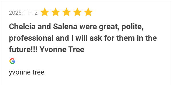 Chelcia and Salena were great, polite, professional and I wi...