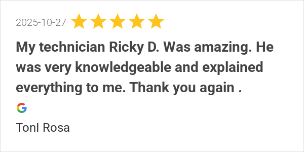 My technician Ricky D. Was amazing. He was very knowledgeabl...