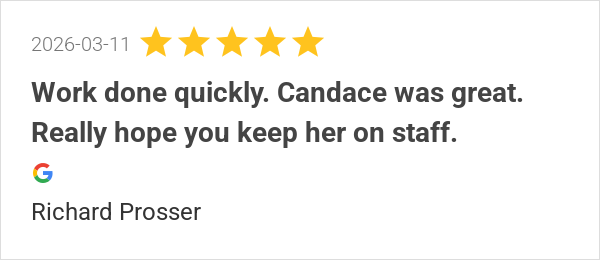 Work done quickly. Candace was great. Really hope you keep h...