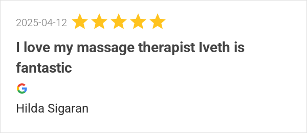 I love my massage therapist Iveth is fantastic