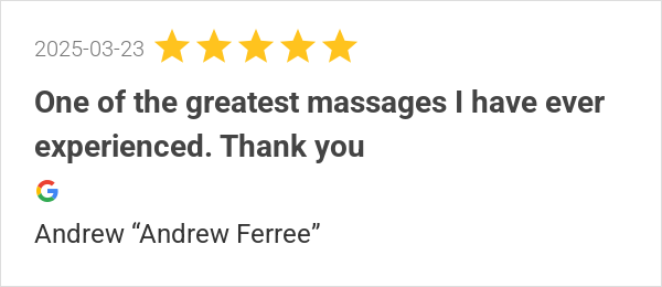 One of the greatest massages I have ever experienced. Thank ...