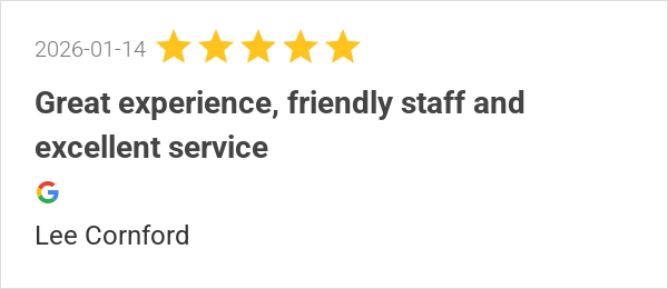 Great experience, friendly staff and excellent service