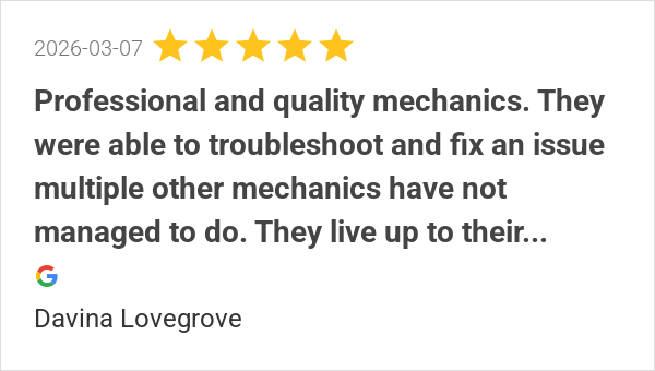 Professional and quality mechanics. They were able to troubl...