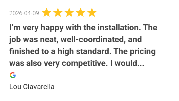 I’m very happy with the installation. The job was neat, well...
