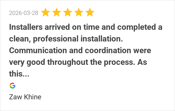 Installers arrived on time and completed a clean, profession...