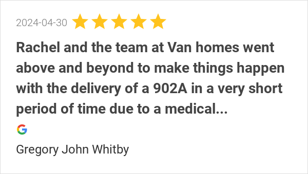 WE ARE VERY HAPPY WITH OUR VAN HOME , MY MUM IS VERY COMFORT...